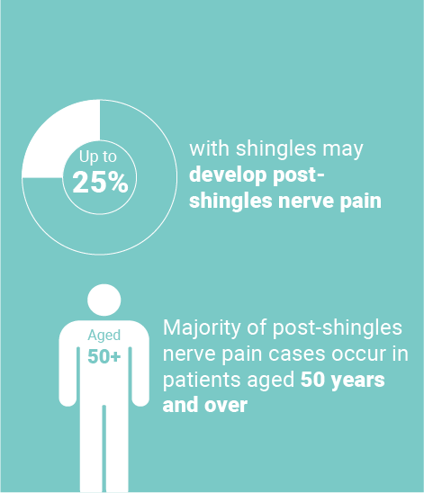 Whilst most people can recover fully, some people may experience complications such as post-shingles nerve pain also known as post-herpetic neuralgia (PHN). The risk of post-shingles nerve pain increases as you get older.